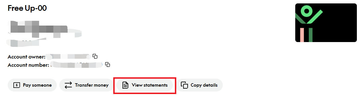 使用你的 Kiwibank 的 Access Number 和密码登录,登录后进入需要生成流水的账户,如下图,点击 View statements 进入下导出页面。