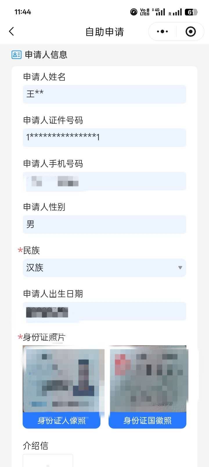 需要填写个人信息以及上传身份证正反面照片:
